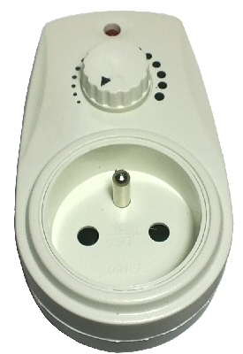 La fiche femelle est au modèle NF 2P+T. Le bouton rotatif permet l'ajustage de